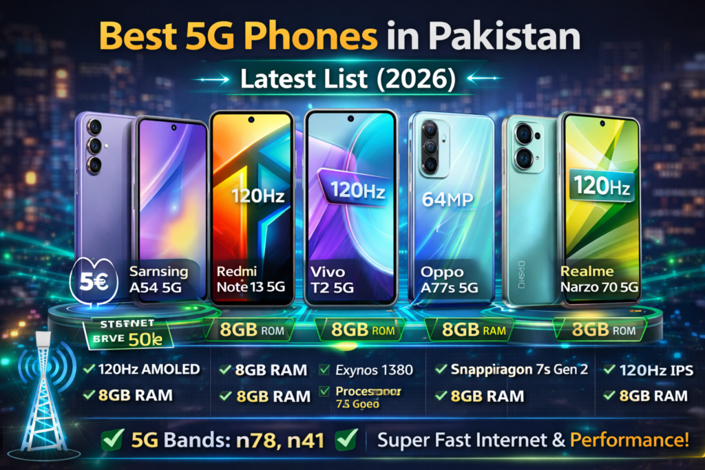 Is article mein hum Pakistan ke 2026 ke best 5G phones ki updated list denge, unke specifications, pros-cons aur buying tips ke sath.
