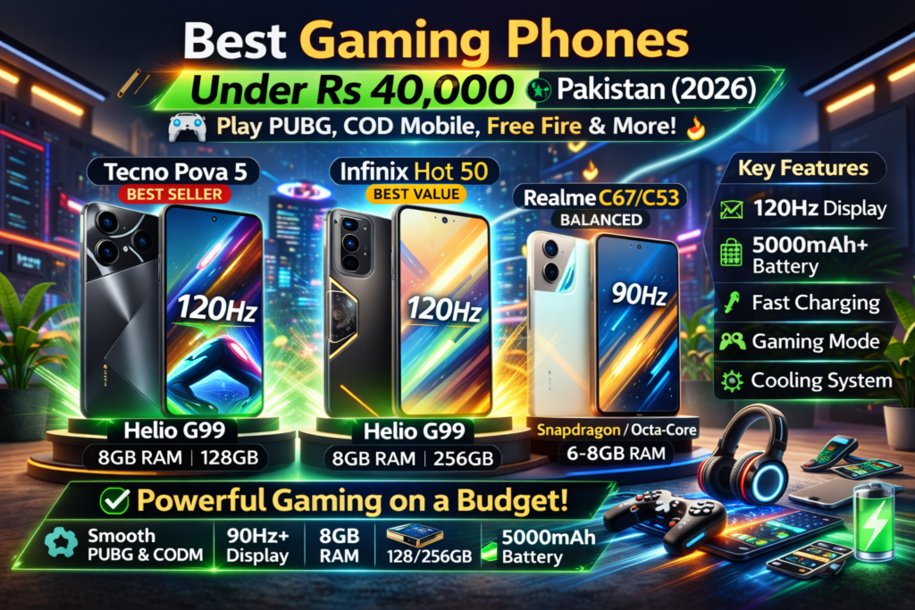 Pakistan mein 2026 ke daur mein mobile gaming bohat popular ho chuki hai. PUBG Mobile, Call of Duty Mobile, Free Fire, Asphalt 9 aur BGMI jaisi games har age group ke log khel rahe hain. Lekin ek common sawal har gamer ka hota hai: “40,000 ke andar best gaming phone konsa hai?”